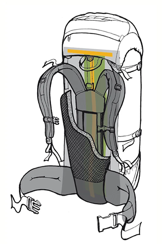 - Schulterträger mit D-Ringen erlauben Vorhängen des Daypacks – dann hat man einen sehr grossen Rucksack mit riesiger Vortasche