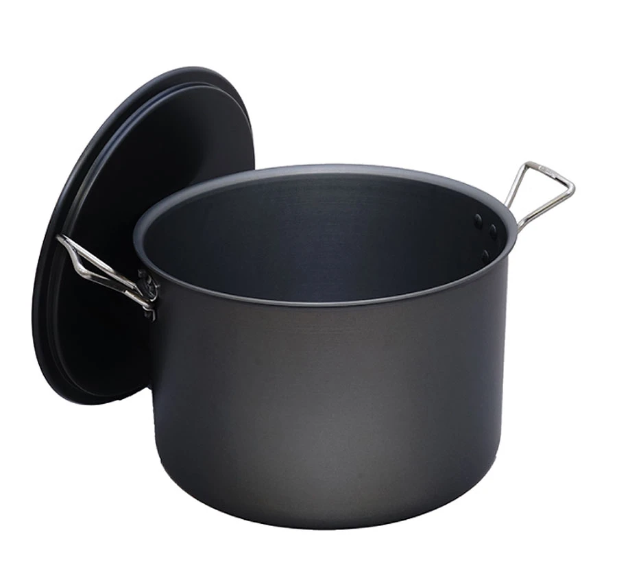 - Material Alu ist sehr gut hitzeleitend, Kochgut brennt auch bei diesem Volumen nicht so schnell an (rühren muss mensch natürlich auch hier!)