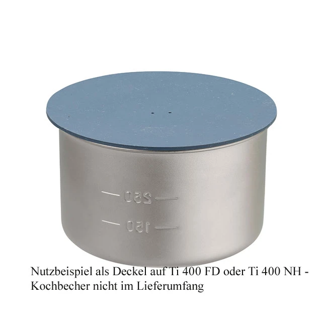- Kann auch als Auflagedeckel für Brennstoffersparnis beim Kochen im Ti 400 FD oder Ti 400 NH Kochbescher genutzt werden