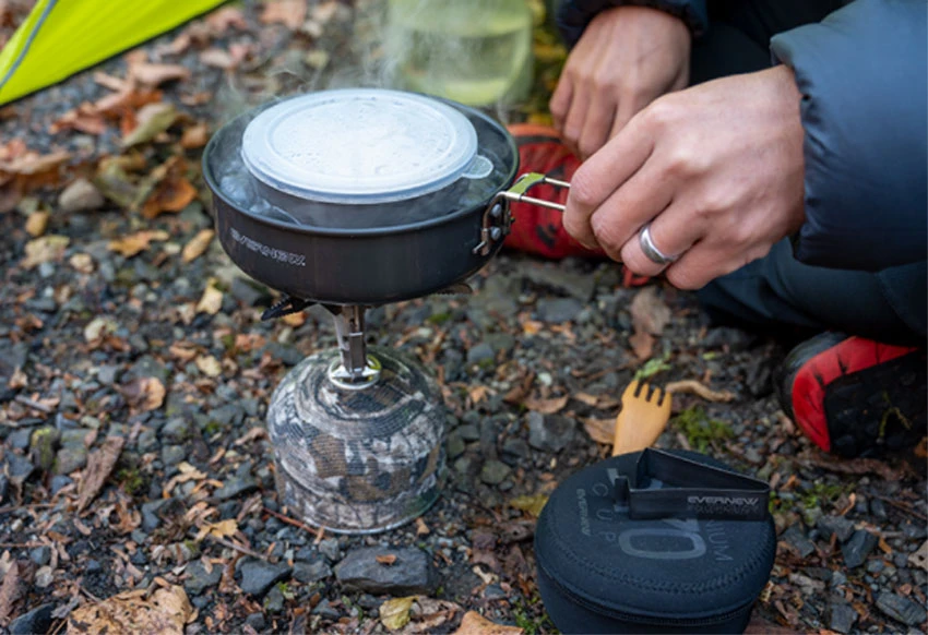 Ein ultraleichter Topf mit dicht schliessendem Silicone-Deckel. Nützlich für Camping wie auch für UL-Geher.