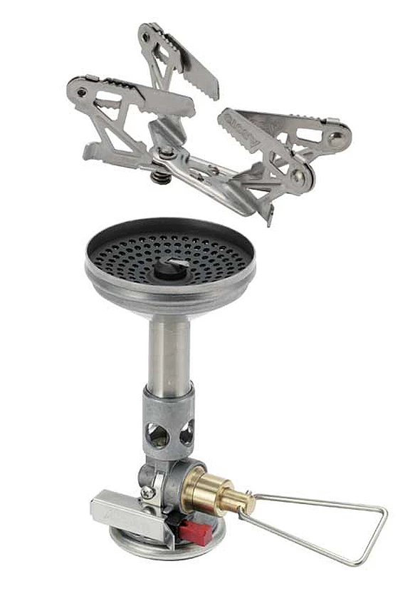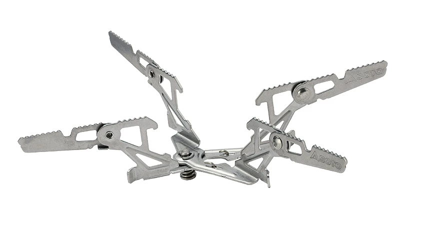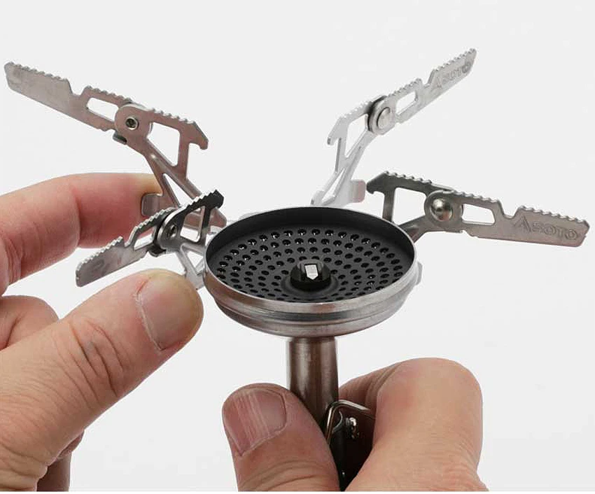 Sehr ungewöhnlich für einen Aufsatz-Gaskocher ist die sehr fein-reagierende Einstellung der Flammstärke – wie alle Teile von Soto, speziell auch die Kocher, beeindruckende mechanische Feinarbeiten im Aufbau.